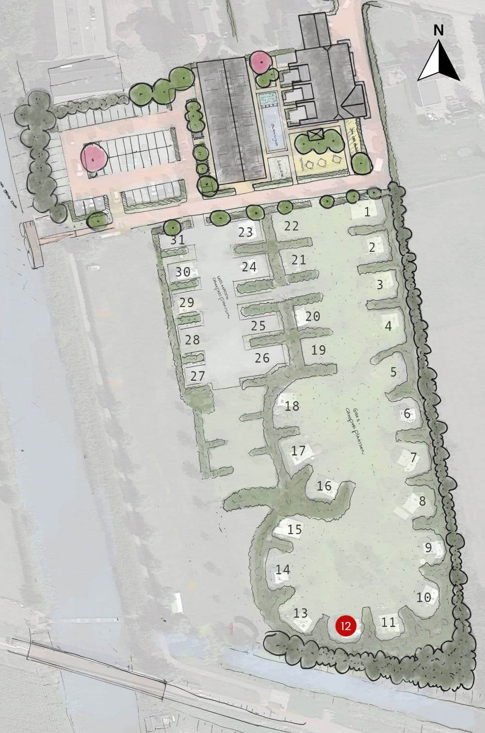 Prijs per verblijf voor 1 of 2 volwassen personen inclusief gebruik van elektra 10A, een eigen wateraansluiting en afvoer aansluiting, gratis gebruik van WiFi en verwarmd sanitair. Extra opties zijn bij te boeken.